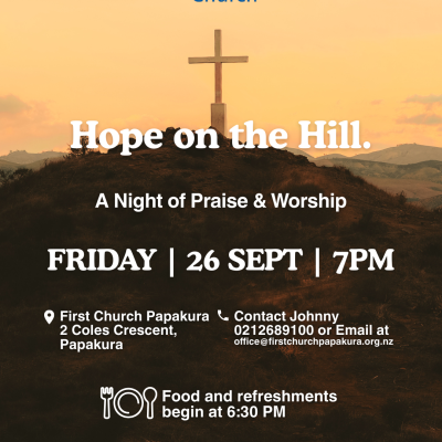 Sing to the Lord! Give Praise to the Lord! Jer 20:13Get ready for a powerful evening of praise and worship at First Church Papakura! Join us for a special night of connection, prayer, and worship. The evening will begin at 6:30 PM with food and refreshments, and the worship service will start at 7:00 PM. […]